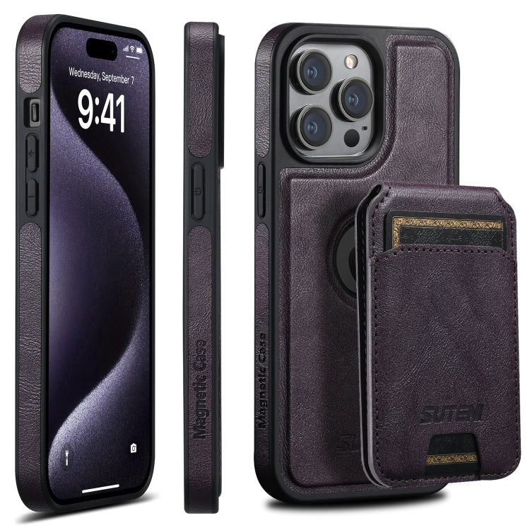 Funda para Teléfono Suteni M2 Oil Wax con Tarjetero Horizontal Magsafe para iPhone 16 Pro Max (Morado)