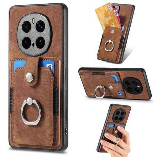 Funda para Teléfono Honor Magic7 Pro con Tarjetero y Anillo Tacto de Piel (Marrón)