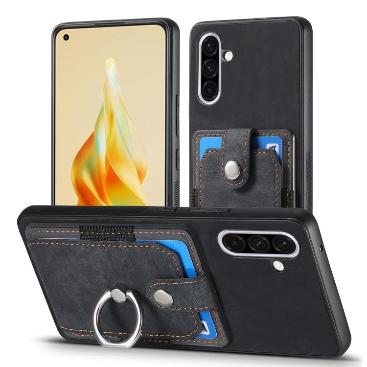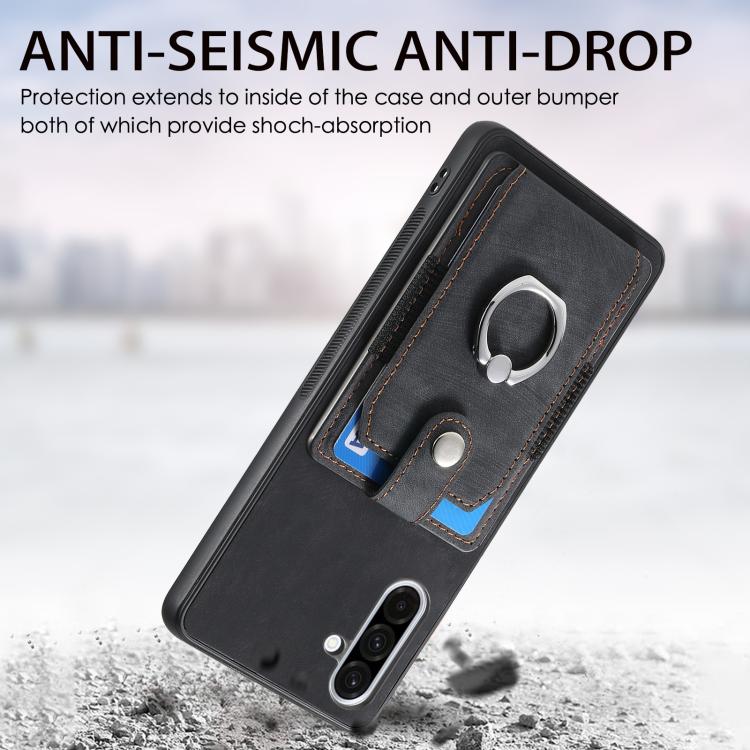 Funda para Teléfono Samsung Galaxy A36 con Tarjetero y Anillo Tacto Retro (Negra)