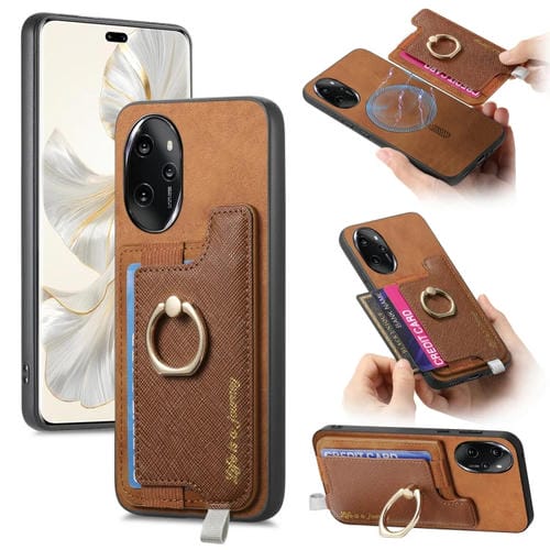 Funda para Teléfono Honor 100 Pro con Tarjetero y Anillo Cuero Retro Magsafe (Marrón)