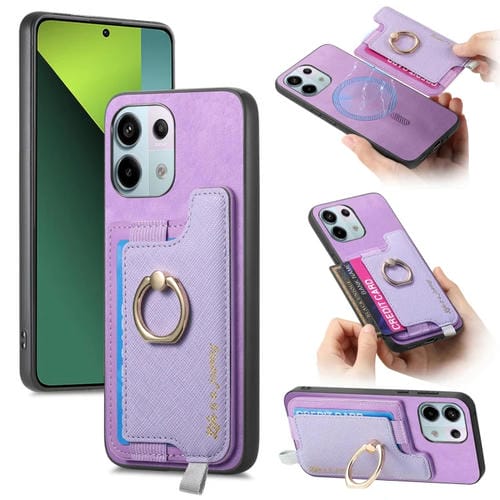 Funda para Teléfono con TaRJetero y Anillo de Cuero con Diseño Retro Magsafe para Redmi Note 13 Pro 5G/Poco X6 5G (Morado)