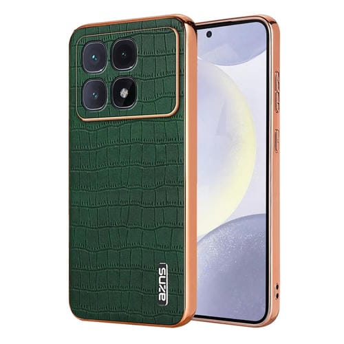 Funda para Teléfono con Textura de Cocodrilo y Marco Galvanizado Azns para Redmi K70 Ultra (Verde)