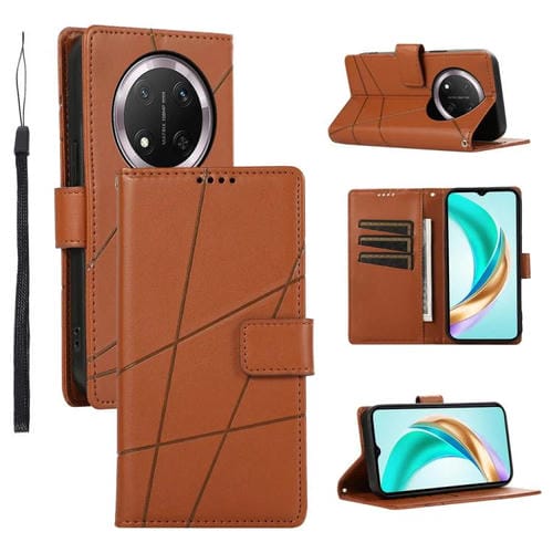 Funda para Teléfono Honor X9C Global Magic7 Lite Textura Cuero Genuino PU Líneas En Relieve (Marrón)