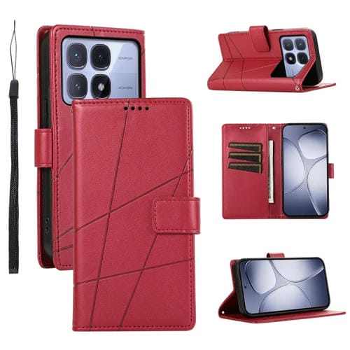 Funda para Teléfono con Textura de Cuero Genuino Pu con Líneas En Relieve para Redmi K70 Ultra (Rojo)