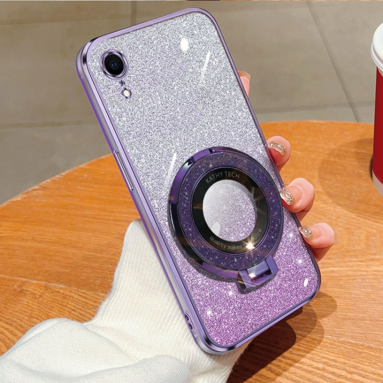 Funda para Teléfono TPU con Soporte Redondo Purpurina Degradado Chapado iPhone Xr (Morado)
