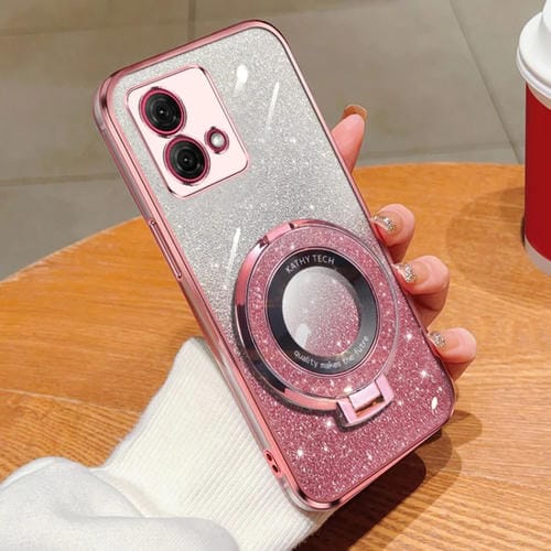 Funda TPU con Soporte Redondo y Purpurina Degradada para Motorola Moto G84 (Rosa)