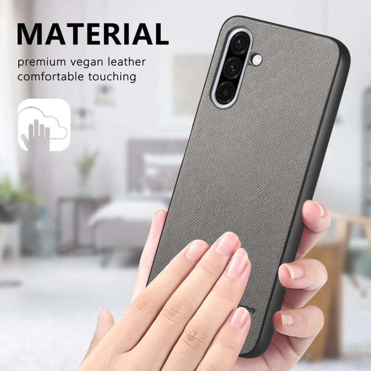 Funda para Teléfono Samsung Galaxy A56 5G Parte Trasera Piel y Tejido de Sarga (Gris)