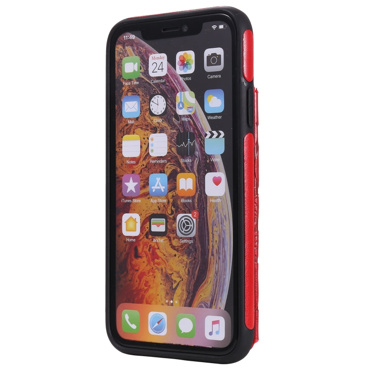Funda Protectora para iPhone Xr con Soporte Ranuras Tarjetas y Marco de Fotos (Rojo)