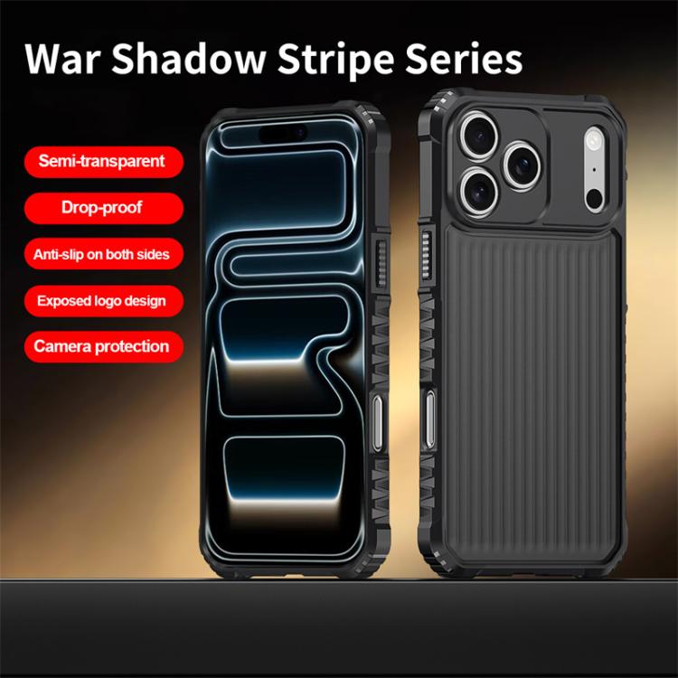 Funda protectora antigolpes War Shadow Stripe Series con airbag y acabado esmerilado para iPhone 17 Pro Max (Negro)