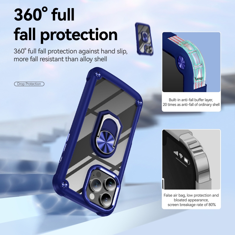 Funda Protectora de Lente TPU + PC para iPhone 16 Pro Max con Soporte de Anillo (Azul)