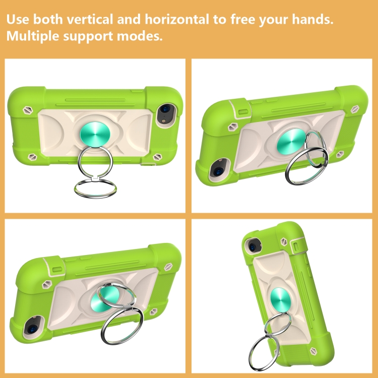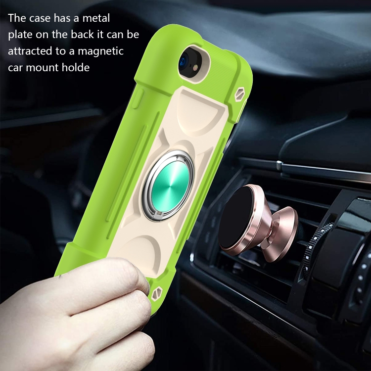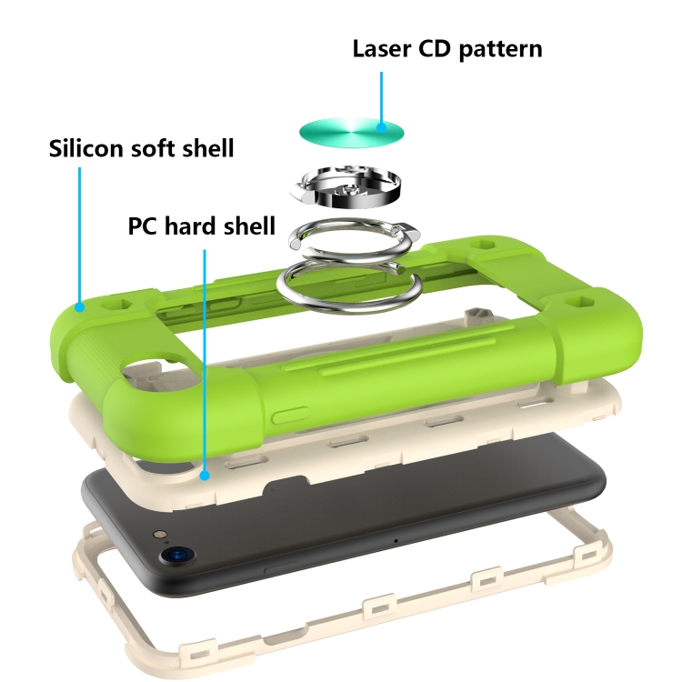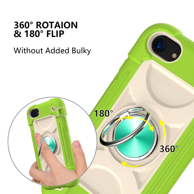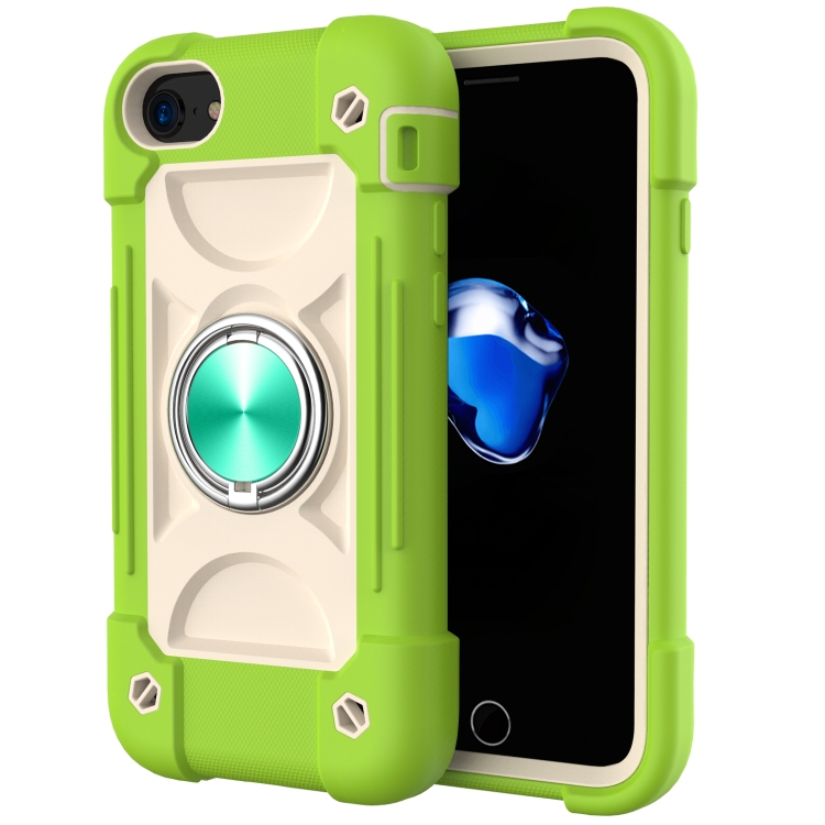 Funda Protectora de Silicona + PC con Soporte de Anillo Dual para iPhone 6 Plus / 6S Plus / 7 Plus / 8 Plus (Guava)