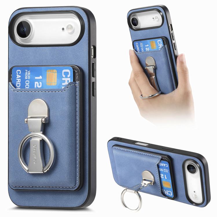 Funda retro plegable con anillo y tarjetero para iPhone Air, MagSafe (azul)