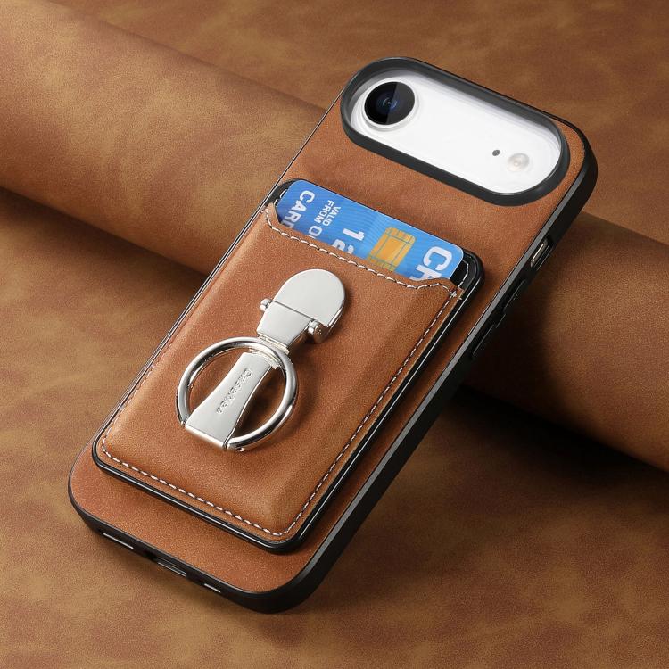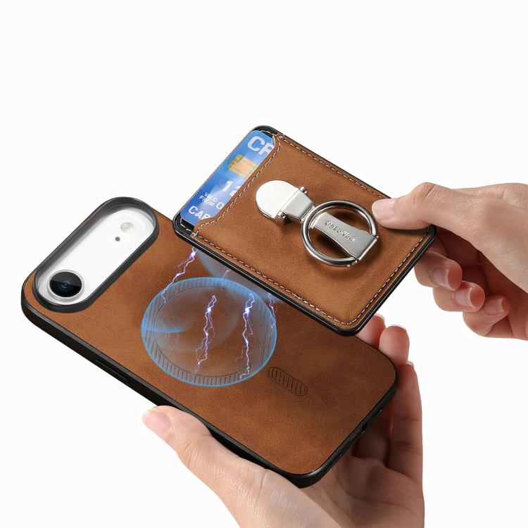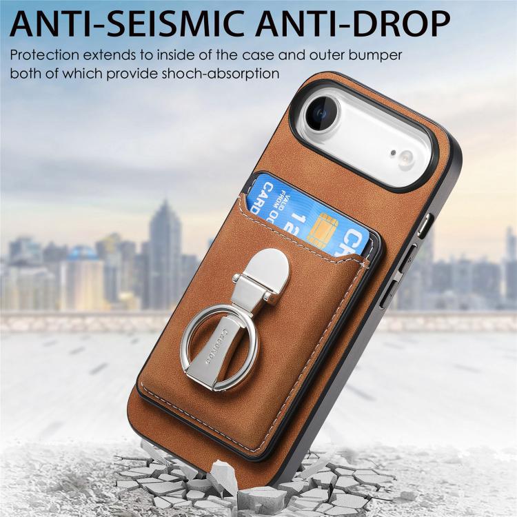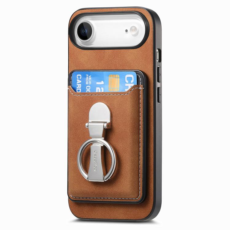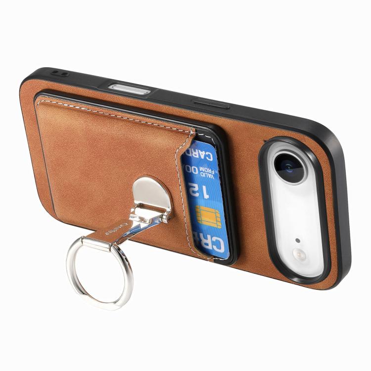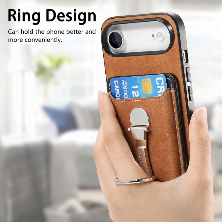 Funda retro plegable con anillo y tarjetero para iPhone Air (marrón)