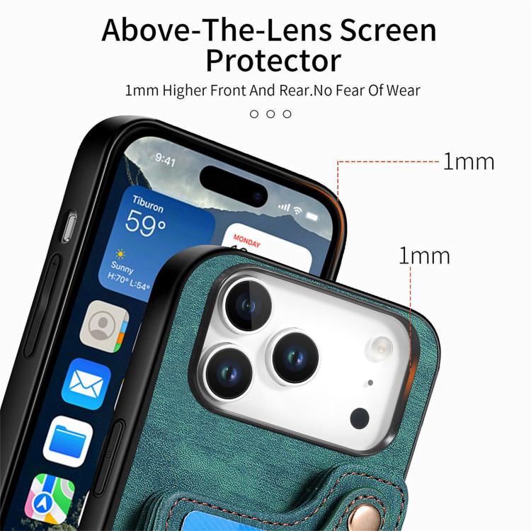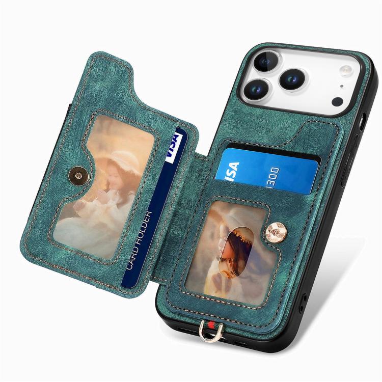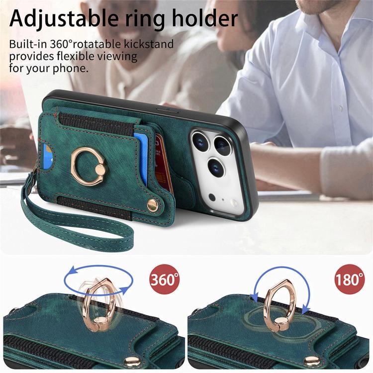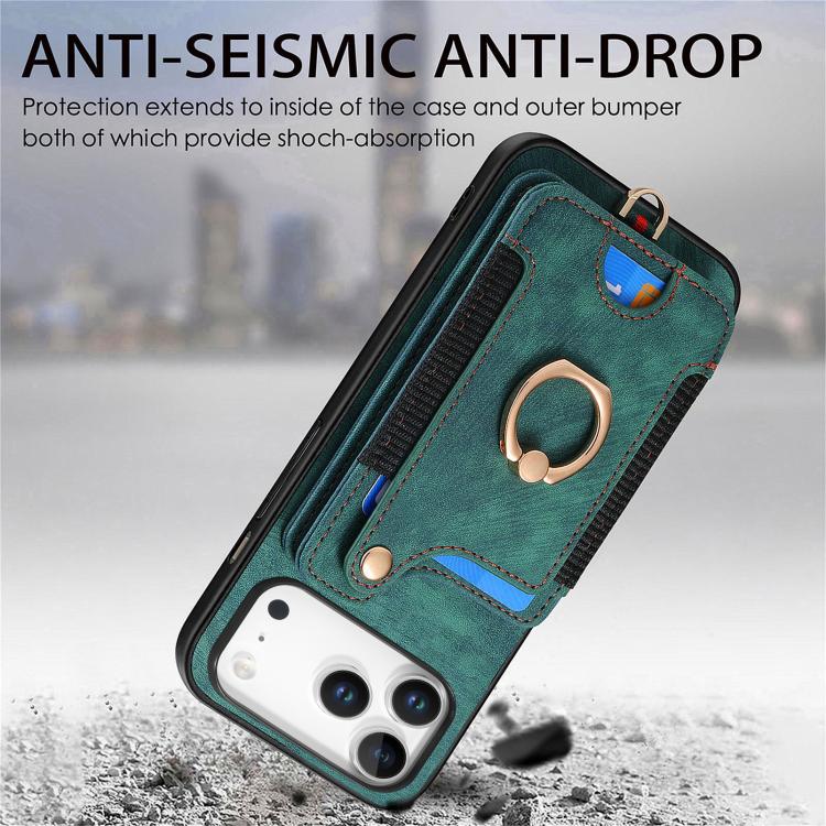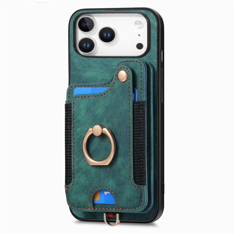 Funda tipo cartera con anillo multitarjeta y diseño retro para iPhone 17 Pro Max (verde)