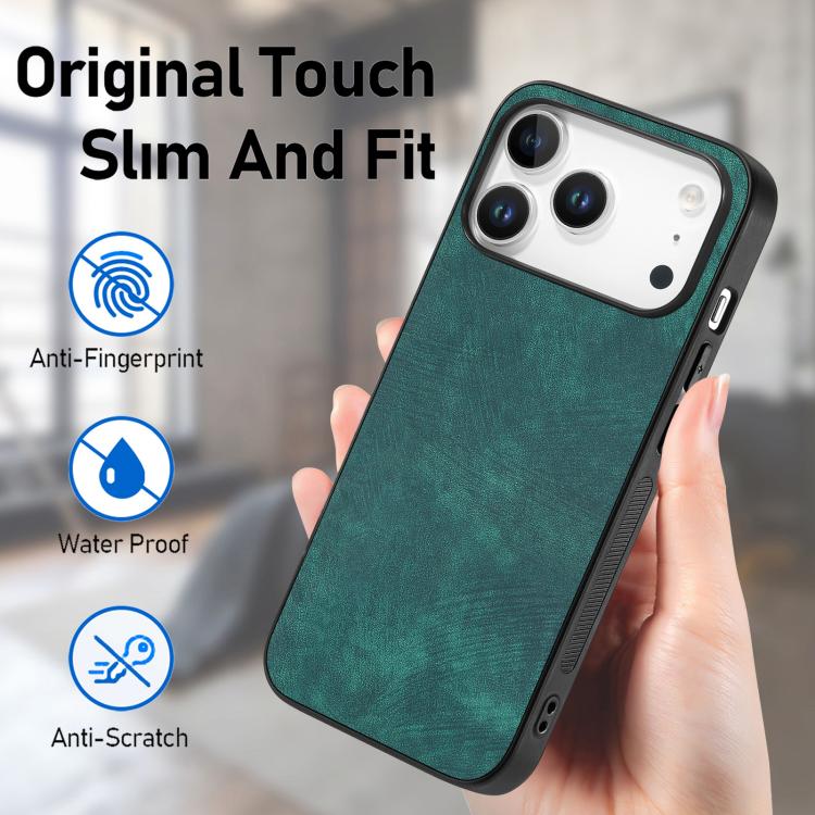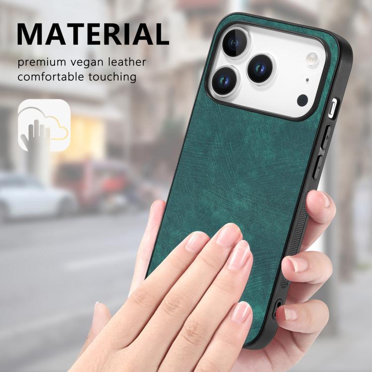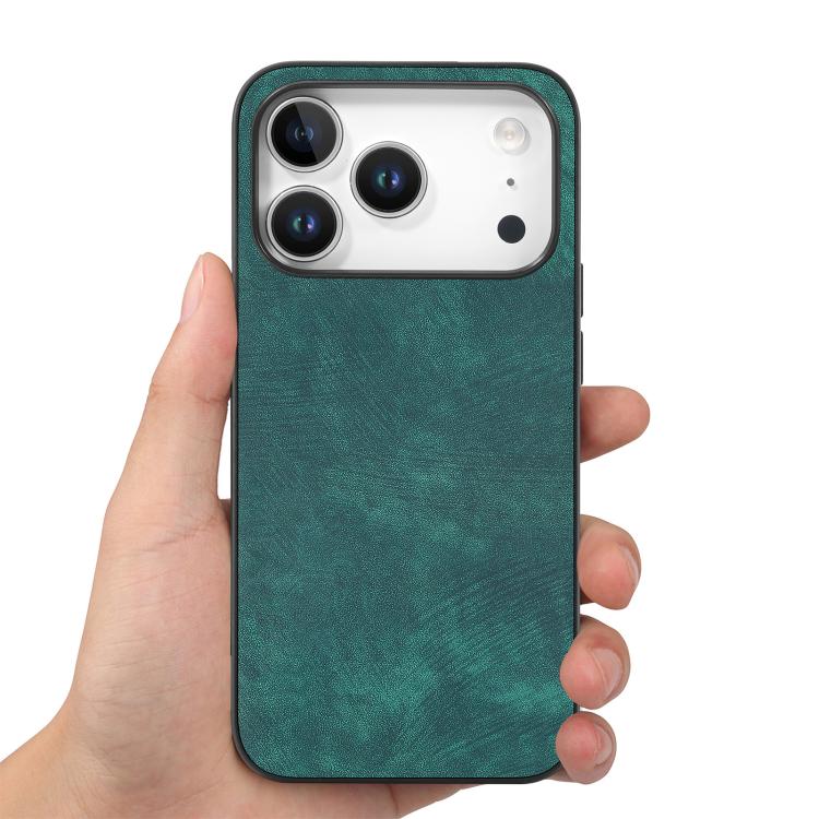Funda trasera de PC de cuero vintage para iPhone 17 Pro (verde)