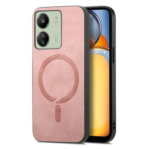 Funda Trasera de Pu Magsafe Retro de Color Sólido para Xiaomi Redmi 13C (Rosa)