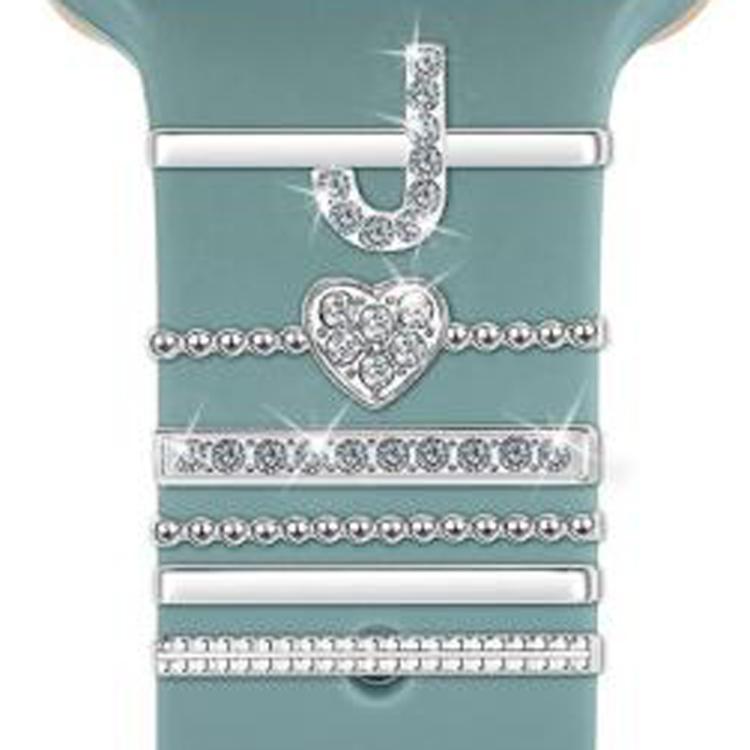 Juego de 6 correas de silicona universales para reloj inteligente, accesorios de metal decorativos, tamaño J (plata)