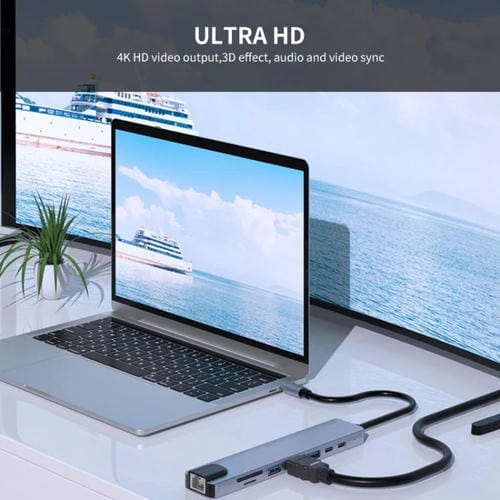 - 1x Adaptador Junsunmay 8 en 1 Tipo-C a 4K HDMI Estación de Acoplamiento Ethernet PD Centro de Carga Rápida Lector de Tarjetas SD/TF