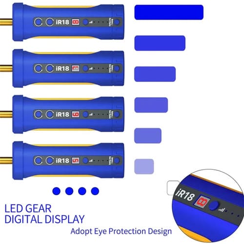 El removedor de pegamento eléctrico OCA Mecánico IR18 es una herramienta especializada diseñada para facilitar la eliminación precisa y segura de Adhesivos en Pantallas y componentes electrónicos. Este dispositivo cuenta con un Motor de cobre puro importado que ofrece alta precisión y durabilidad, y dispone de un sistema de rotación bidireccional adaptable a diversos tipos de pegamentos sin dañar la Pantalla. Su diseño incluye una Batería extraíble de 2000 mAh (modelo universal 18650) que permite hasta 10 horas de uso continuo, con opción de Alimentación externa de 9 V para mayor versatilidad. El equipo ofrece un ajuste de velocidad variable con 8 niveles, alcanzando hasta 7000 rpm, y está equipado con iluminación blanca para mejorar la visibilidad y una luz verde indicadora de polvo. Además, incorpora funciones de ahorro energético como el apagado automático tras 10 segundos sin uso, y un sistema plug and play para una operación sencilla y eficiente. Este removedor es compatible con múltiples aplicaciones de reparación profesional y usuarios que reparan por cuenta propia, siendo una solución técnica para trabajos de mantenimiento y restauración de dispositivos electrónicos.