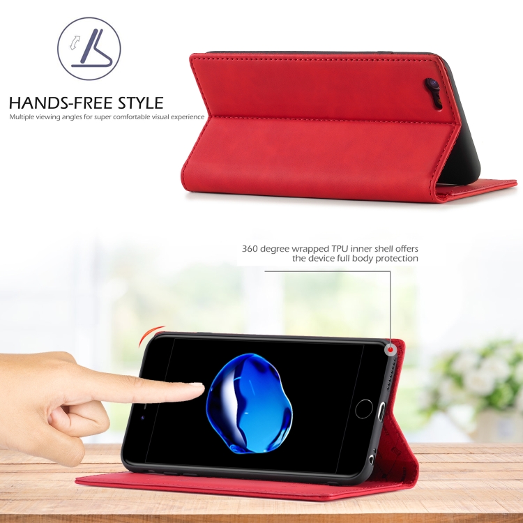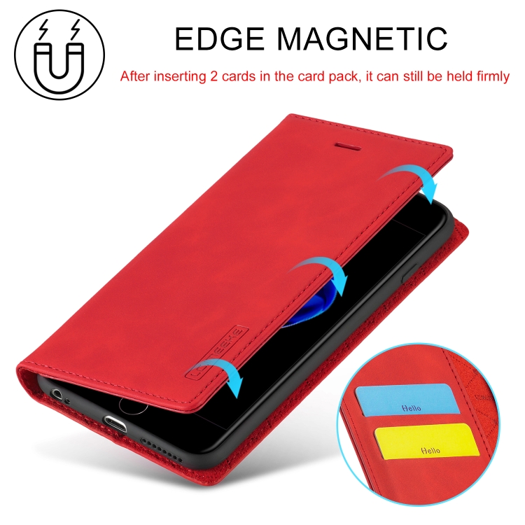 Funda para iPhone 6 Plus 6S Plus Lc.Imeeke TPU y Cuero con Soporte y Ranuras (Rojo)