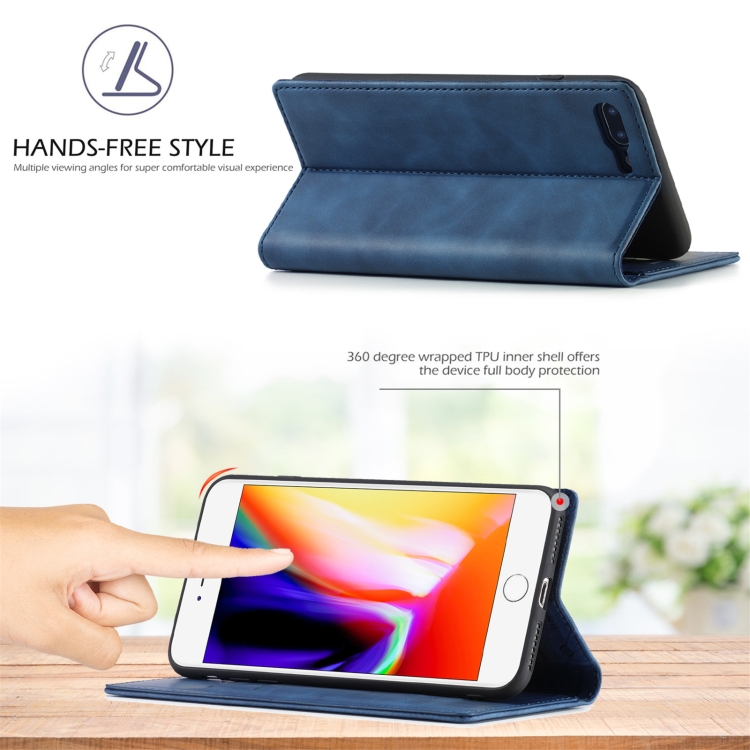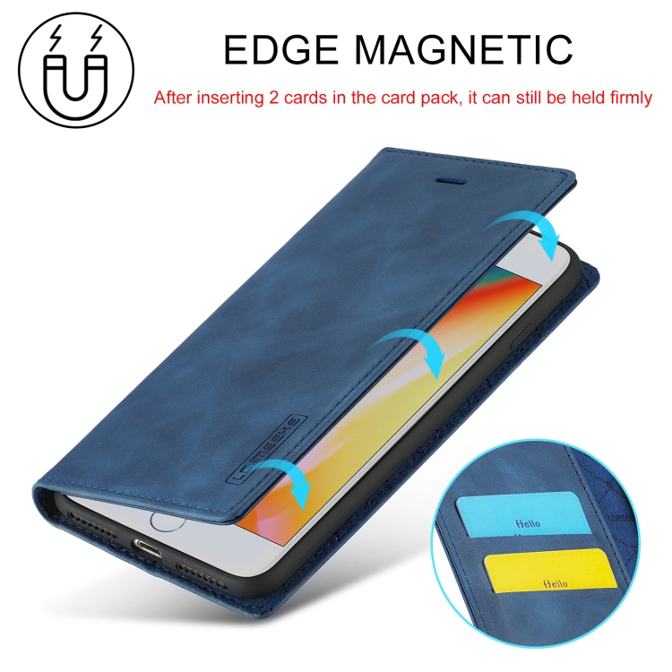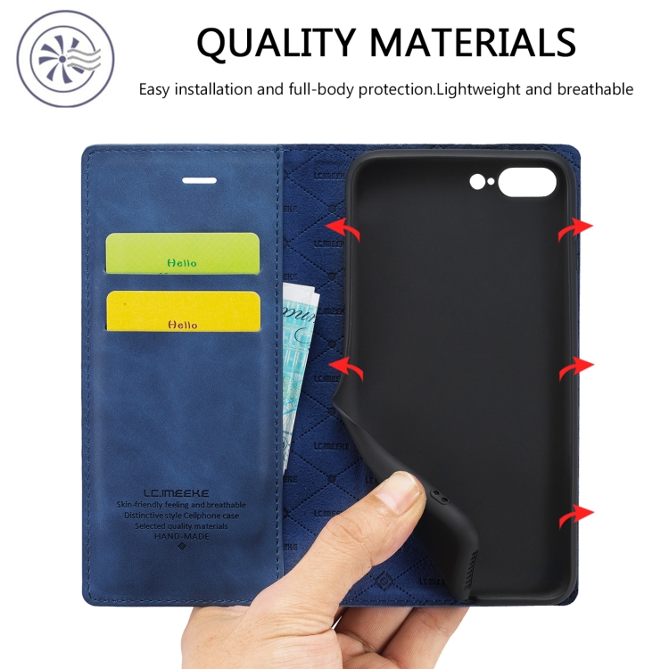 Funda para iPhone 8 Plus / 7 Plus Lc.Imeeke Ultrafina con Tapa Horizontal, Soporte y Ranuras para Tarjetas (Azul)