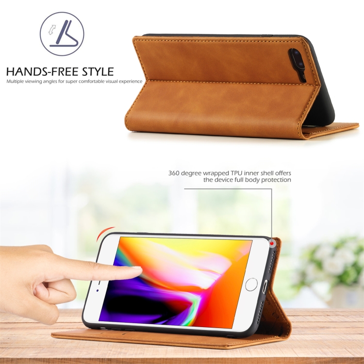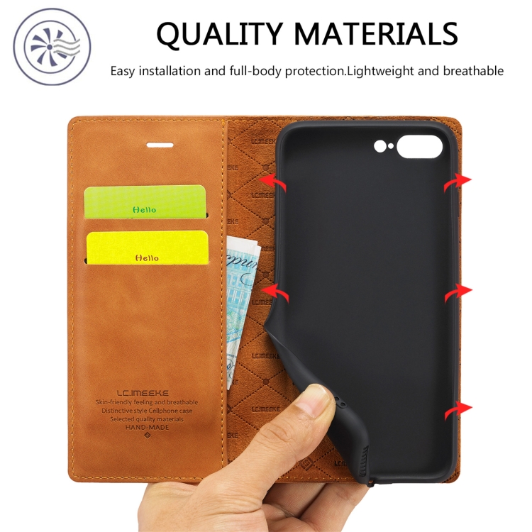 Funda para iPhone 8 Plus 7 Plus Lc.Imeeke Ultrafina TPU Mate con Tapa Horizontal y Soporte (Marrón)