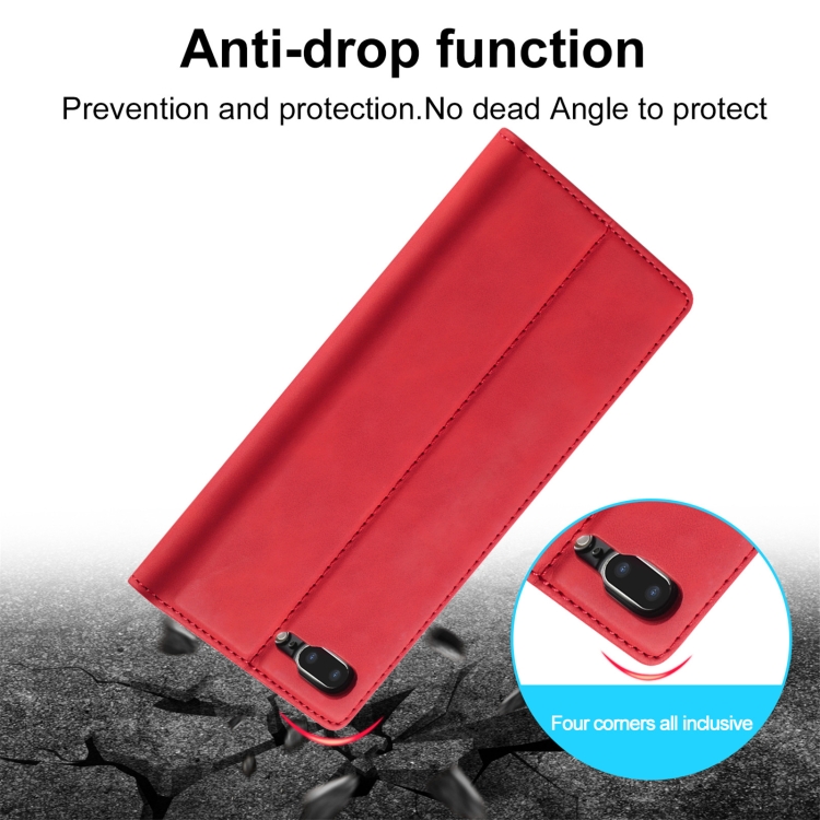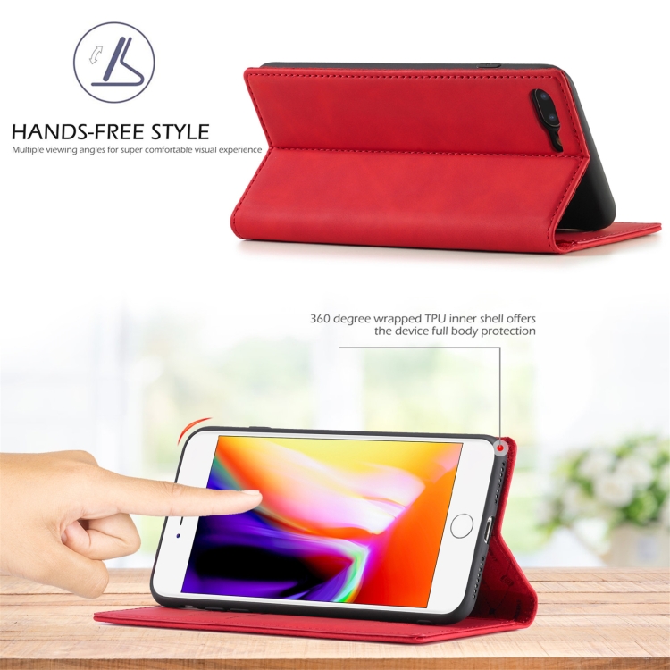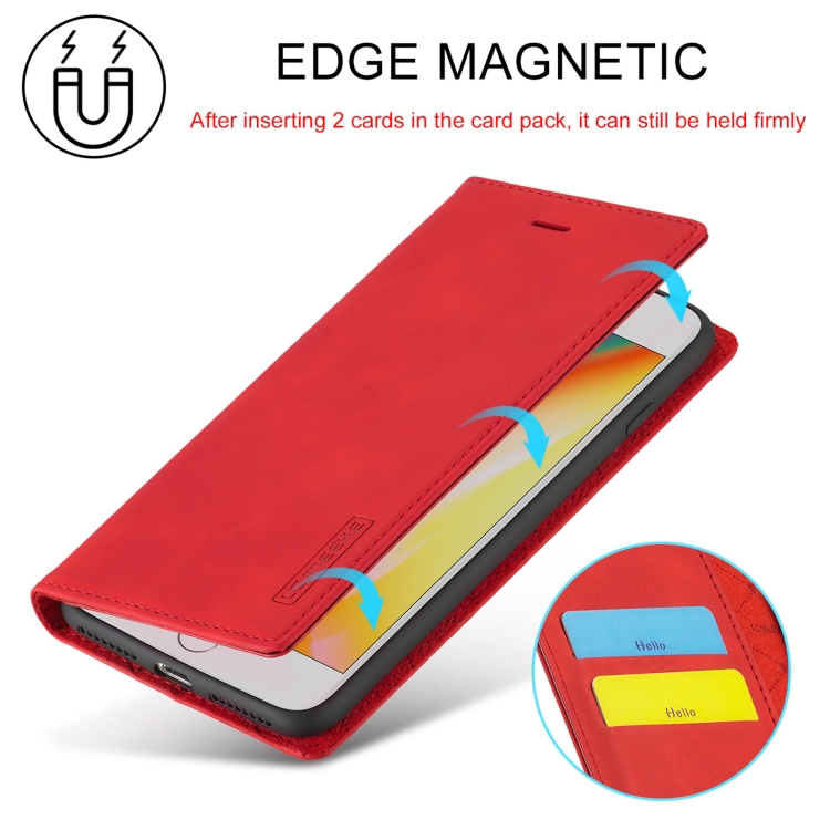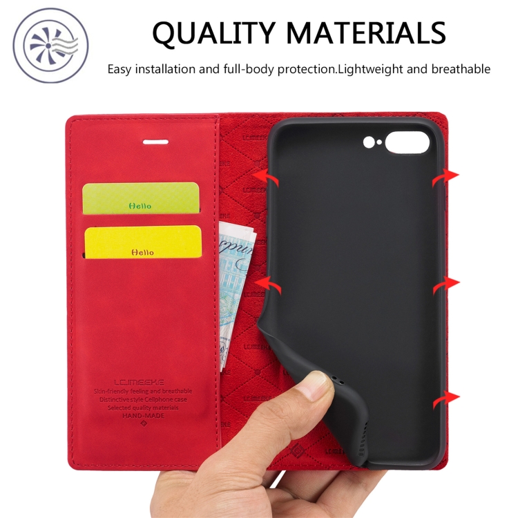 Funda para iPhone 8 Plus / 7 Plus Lc.Imeeke TPU Mate con Tapa Horizontal, Soporte, Ranuras y Billetera (Rojo)