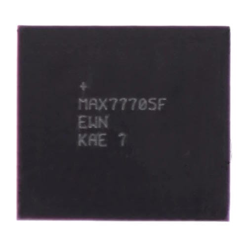 El Módulo IC de Potencia MAX77705F es un controlador de energía integrado diseñado para gestionar eficientemente la distribución y regulación de energía en dispositivos electrónicos compatibles con este modelo. Este componente es adecuado para usuarios que reparan por cuenta propia o técnicos especializados que requieren un reemplazo confiable para unidades con fallos en el sistema de Alimentación. Su función principal es optimizar el consumo energético y garantizar la estabilidad eléctrica del dispositivo, asegurando un rendimiento adecuado y prolongando la vida útil de la Batería y otros componentes asociados.