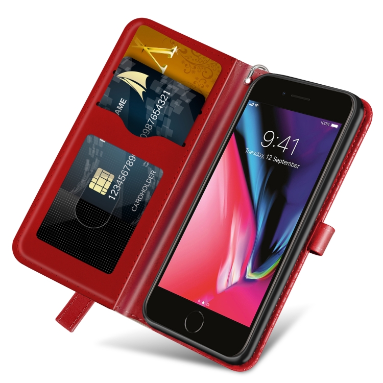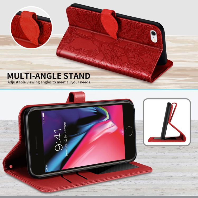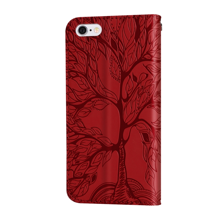 Estuche de Cuero Life Of Tree iPhone 6 y 6S Tapa Horizontal Soporte Ranura Tarjeta (Rojo)