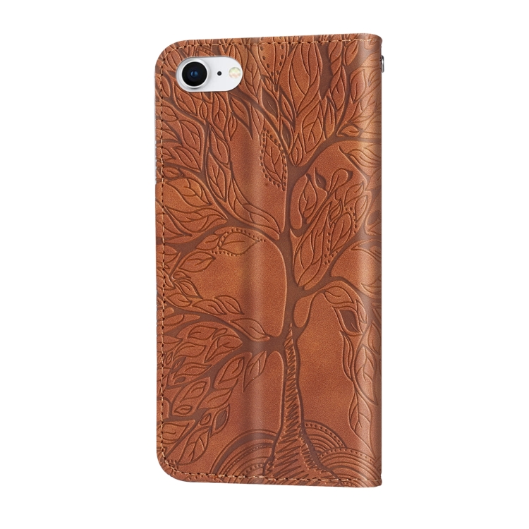 Estuche de Cuero Life Of Tree con Tapa Horizontal, Soporte, Ranura para Tarjeta, Billetera y Cordón para iPhone 8 y 7 (Marrón)