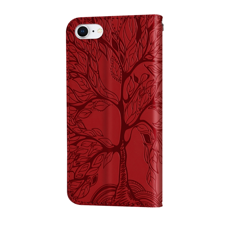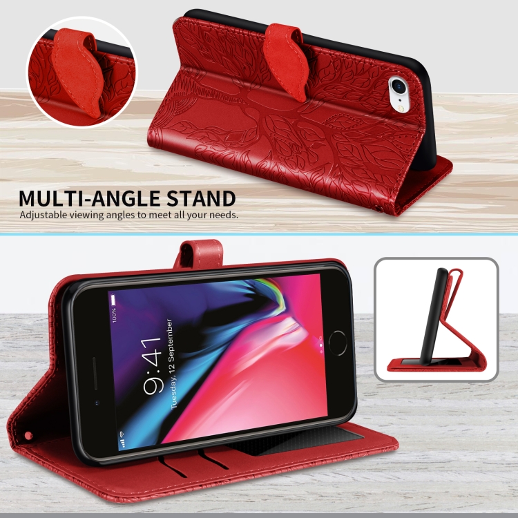 Estuche de Cuero Life Of Tree con Tapa Horizontal Soporte Ranura Tarjeta Billetera Marco Fotos Cordón para iPhone 8 y 7 (Rojo)