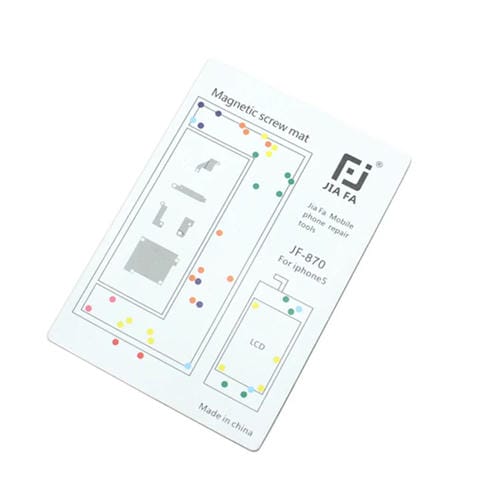 La alfombrilla de tornillos magnéticos Jiafa para iPhone 5 es un accesorio especializado diseñado para facilitar la organización y manejo de tornillos durante procesos de reparación y mantenimiento de este modelo específico de Apple. Su función principal es evitar la pérdida y mezcla de tornillos mediante una superficie magnética segmentada por colores que permite ubicar cada tornillo según su tipo y posición Original en el dispositivo. Esta herramienta es ideal para usuarios que reparan por cuenta propia y técnicos especializados, proporcionando un Soporte seguro y ordenado durante la extracción y manipulación de componentes internos del iPhone 5.