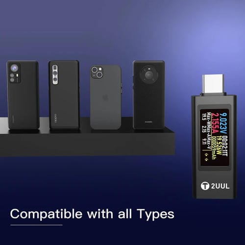 - 1x Mini Detector de Carga 2UUL Charging Mate Type-C con Prueba de Corriente Bidireccional