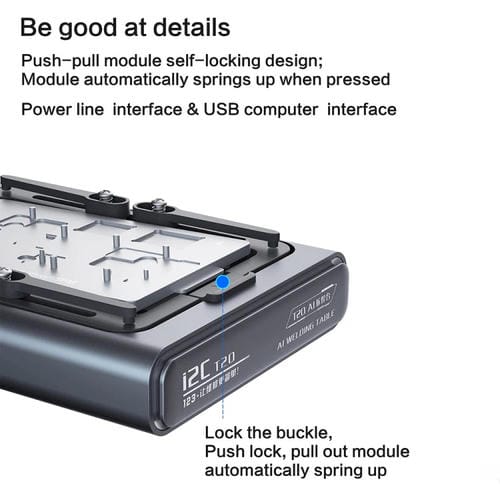El Módulo Plataforma Calefacción i2C T20 Serie Universal es un componente especializado diseñado para su integración en plataformas de calentamiento basadas en la tecnología i2C T20. Este Módulo es compatible con una amplia gama de dispositivos dentro de la serie universal, ofreciendo un control de temperatura inteligente que garantiza la seguridad y eficiencia durante su operación. Su diseño segmentado y modular permite una expansión Flexible, facilitando la personalización y adaptación según las necesidades específicas del usuario. Además, cuenta con un sistema de autobloqueo push-pull que asegura un ajuste firme y evita daños en la Placa Base, optimizando así la durabilidad y funcionalidad del Conjunto. Este Módulo es ideal para usuarios con conocimientos técnicos que requieran una solución fiable para la reparación o mejora de plataformas de calefacción i2C T20.