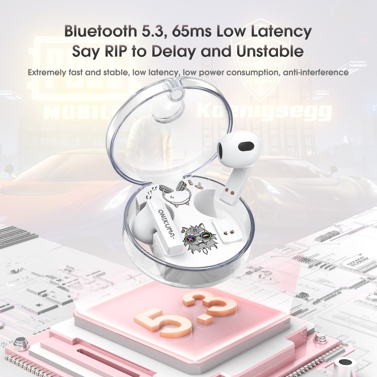 Auricular Bluetooth Onikuma T301 Inalámbrico Dibujos Animados (Blanco)