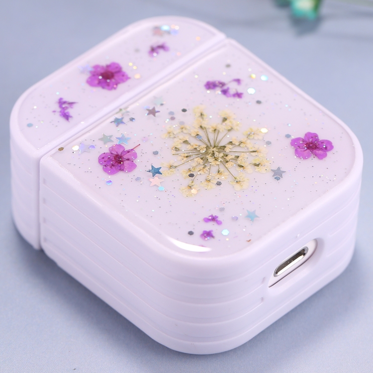 Funda Protectora para AirPods 1/2 Gypsophila con Patrón de Flores (Púrpura)