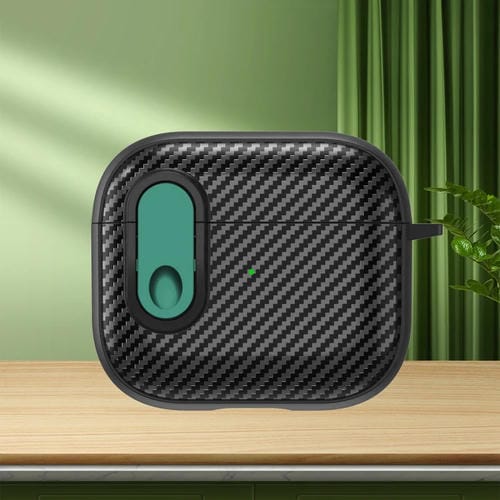For AirPods 3 Carbon Fiber Texture Wireless Earphone Case with Security Lock (Dark Green)