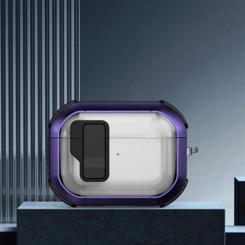 For AirPods Pro 2 Thunder Wireless Earphone Case Clear Protective Cover with Magnetic Switch (Dark Purple)