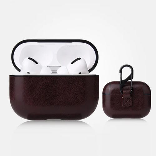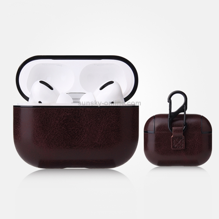 Funda Protectora Para Airpods Pro Cuero PU Textura Caballo Loco Anticaída Con Mosquetón (Café)