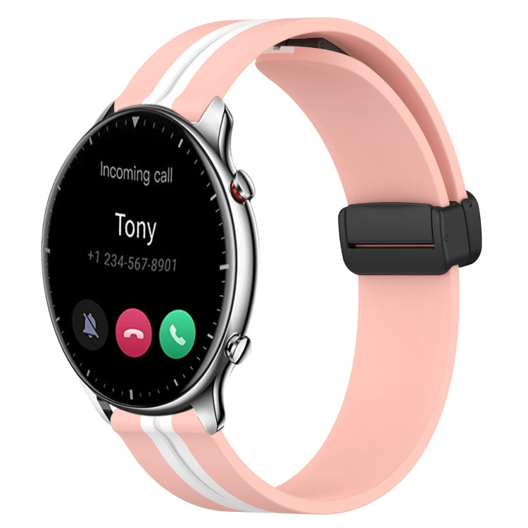 Correa de Reloj para Amazfit GTR 2 22mm Silicona con Cierre Magnético Plegable (Rosa + Blanco)