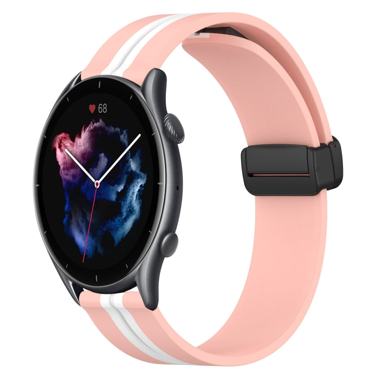 Correa de Reloj para Amazfit GTR 3 22mm Silicona con Cierre Magnético Plegable (Rosa + Blanco)