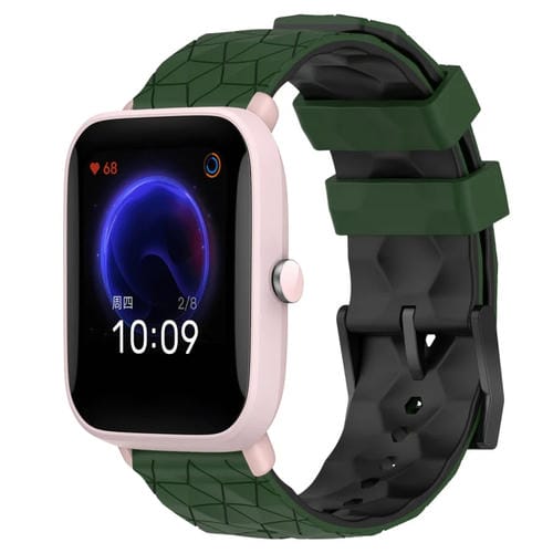 Banda de Reloj Amazfit Pop Pro 20mm silicona textura de fútbol dos colores (Verde Militar + Negro)