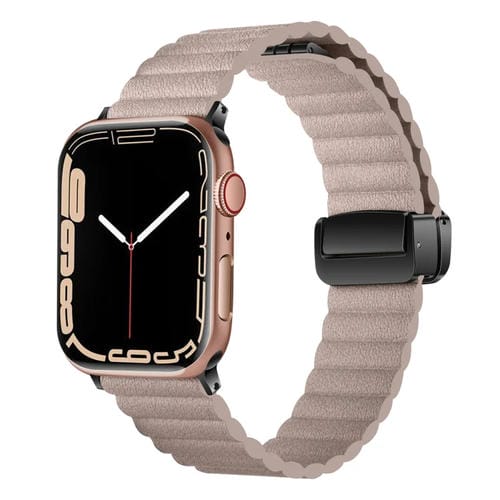 Correa para Apple Watch Series 6 44mm con Hebilla Plegable Magnética y Ondulación de Agua (Caqui)