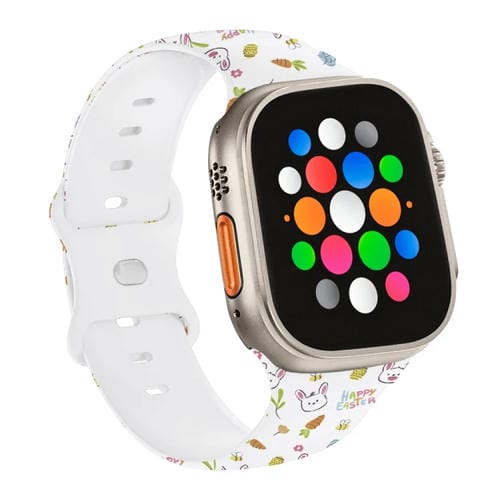 Correa de Silicona para Apple Watch Ultra 2 49mm con Estampado de Pascua y Hebilla de Mariposa (Calabaza Blanca)