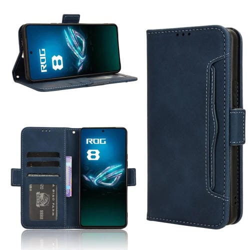 Funda de Cuero para Asus Rog Phone 8 Pro con Textura Skin Feel y Ranuras para Tarjetas (Azul)