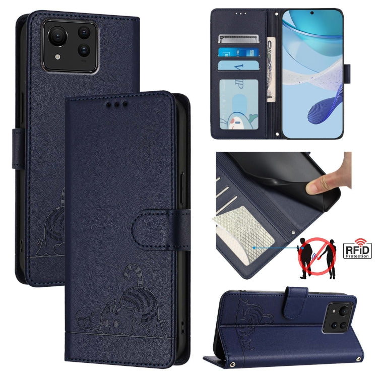 Estuche para Asus Zenfone 11 Ultra de Cuero Rfid con Patrón en Relieve y Cordón (Azul)