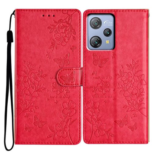 Funda para BlackView A53 / A53 Pro de Cuero con Relieve de Flor y Mariposa (Rojo)