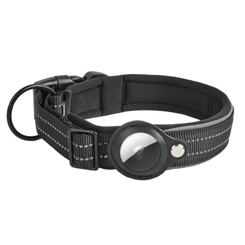 Para Collar de Perro AirTag Tracker Collar Reflectante con Forro de Neopreno Tamaño XL (Negro)