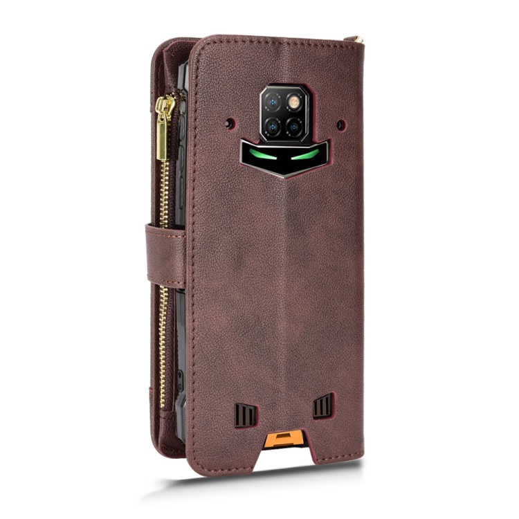 Funda Cuero con Cremallera para Doogee S88 Pro y S88 Plus Litchi Texture (Marrón)