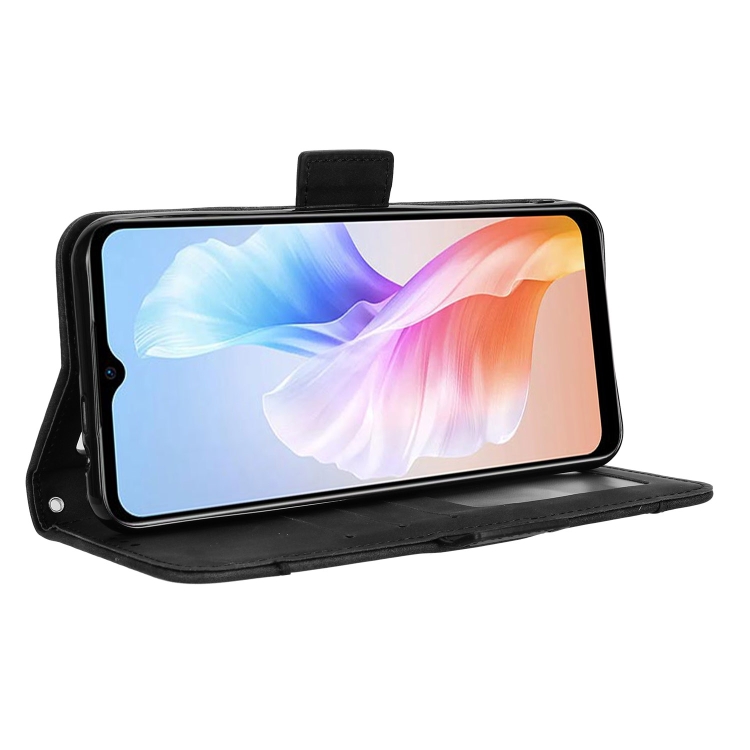 Funda de Cuero para Doogee X98 con Textura Becerro y Ranuras para Tarjetas (Negro)
